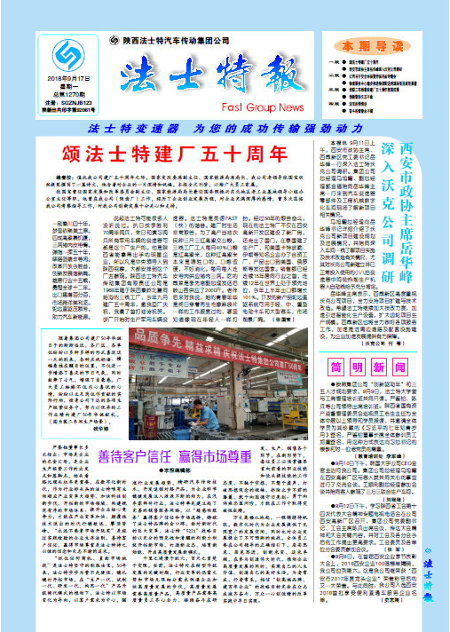 點擊量:5518“回顧法士特50年的發展歷程,我們不僅取得了豐富的企業管理和經營經驗,更重要的是沉淀了豐厚的企業文化底蘊”,集團公司黨委書記、董事長嚴鑒鉑強調,“企業文化